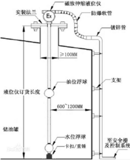 安裝方法三:測量大型立油罐的液位時采用軟纜式頂部安裝
